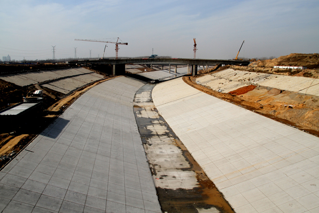 采用復(fù)合土工膜進(jìn)行渠道防滲的優(yōu)點(diǎn)是很明顯的,土工膜的性能發(fā)揮更好,可以有效防止雜草穿透土工膜,以免引起危害。對于膜結(jié)構(gòu)鋪設(shè)渠道,將渠底找平壓實(shí)并刷粘土漿處理,方便接觸面結(jié)合。 鋪好膜后,應(yīng)鋪薄層細(xì)土,并加混凝土蓋板。