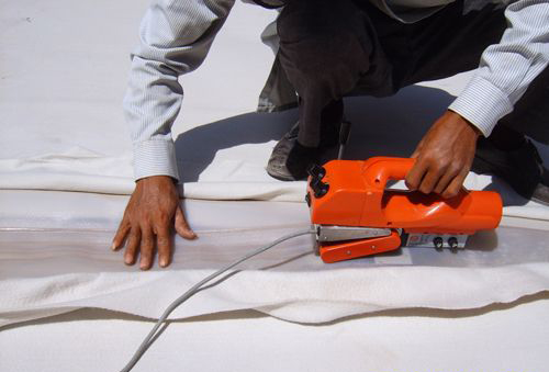 復(fù)合土工膜施工質(zhì)量好壞直接關(guān)系到整個(gè)工程的成敗,因此,須嚴(yán)格按圖施工,嚴(yán)控施工質(zhì)量,施工期應(yīng)提交土工膜鋪設(shè)施工計(jì)劃,報(bào)監(jiān)理。土建基層應(yīng)清除基礎(chǔ)面一切可能損傷復(fù)合土工膜的帶尖棱硬物,填平坑凹,修復(fù)好坡面;壓實(shí)度控制在95%,墊層料經(jīng)壓實(shí)后方可在其上鋪設(shè)復(fù)合土工膜;垂直深度2.50cm內(nèi)不得有樹根、瓦礫、石子、混凝土顆粒等尖棱雜物。