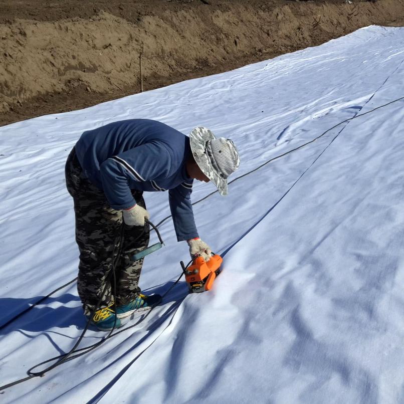 5.復(fù)合土工膜最后封口時(shí)需留有專用出氣口,用來確保與基礎(chǔ)之間粘貼。