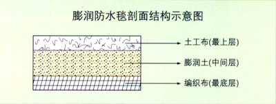 膨潤(rùn)防水毯是一種專門用于人工湖泊水景、垃圾填埋場(chǎng)、地下車庫(kù)、樓頂花園、水池、油庫(kù)及化學(xué)品堆場(chǎng)等防滲漏的土工合成材料,它是由高膨脹性的鈉基膨潤(rùn)土填充在特制的復(fù)合土工布和無(wú)紡布之間,用針刺法制成的膨潤(rùn)土防滲墊可形成許多小的纖維空間,是膨潤(rùn)土顆粒不能像一個(gè)方向流動(dòng),遇水時(shí)在墊內(nèi)形成均勻高密度的膠狀防水層,有效的防止水的滲漏。